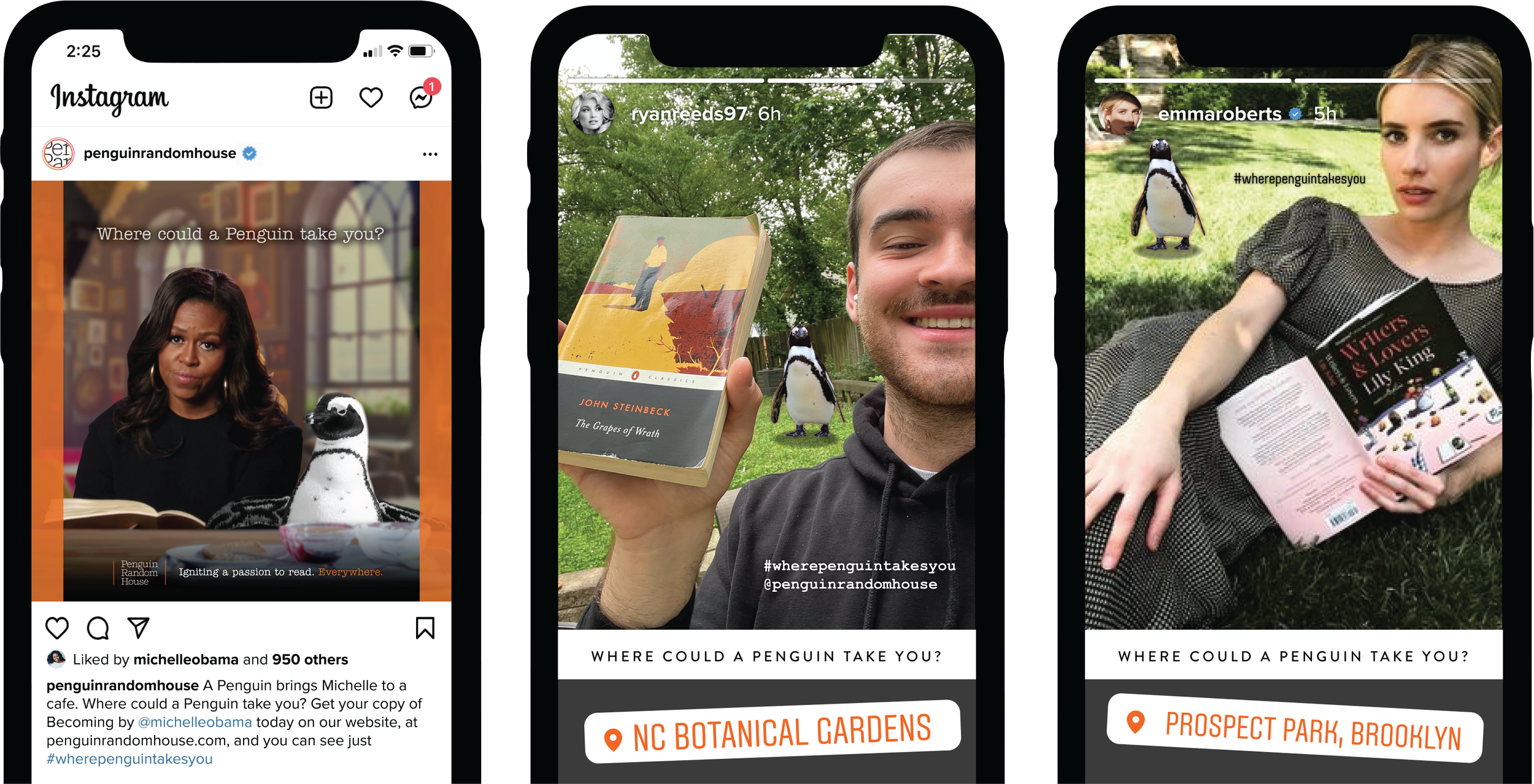 A great book—or The Penguin—can you take you somewhere—to a place, to a feeling, to an experience. This is a visually-driven mock campaign with out-of-home and social ads, as Penguin Random House strives to be innovative with its social media use. The visuals illustrate the Penguin (a physical manifestation of the brand) as an adorable companion, taking you along with him to experience something new.